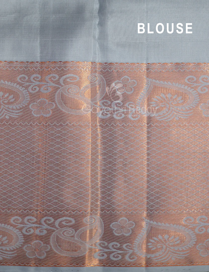 SAREE: The body features with vibrant bright Kalanetha grey colour saree , enriched with zari intricate design and zari borders that brings inner royalty.