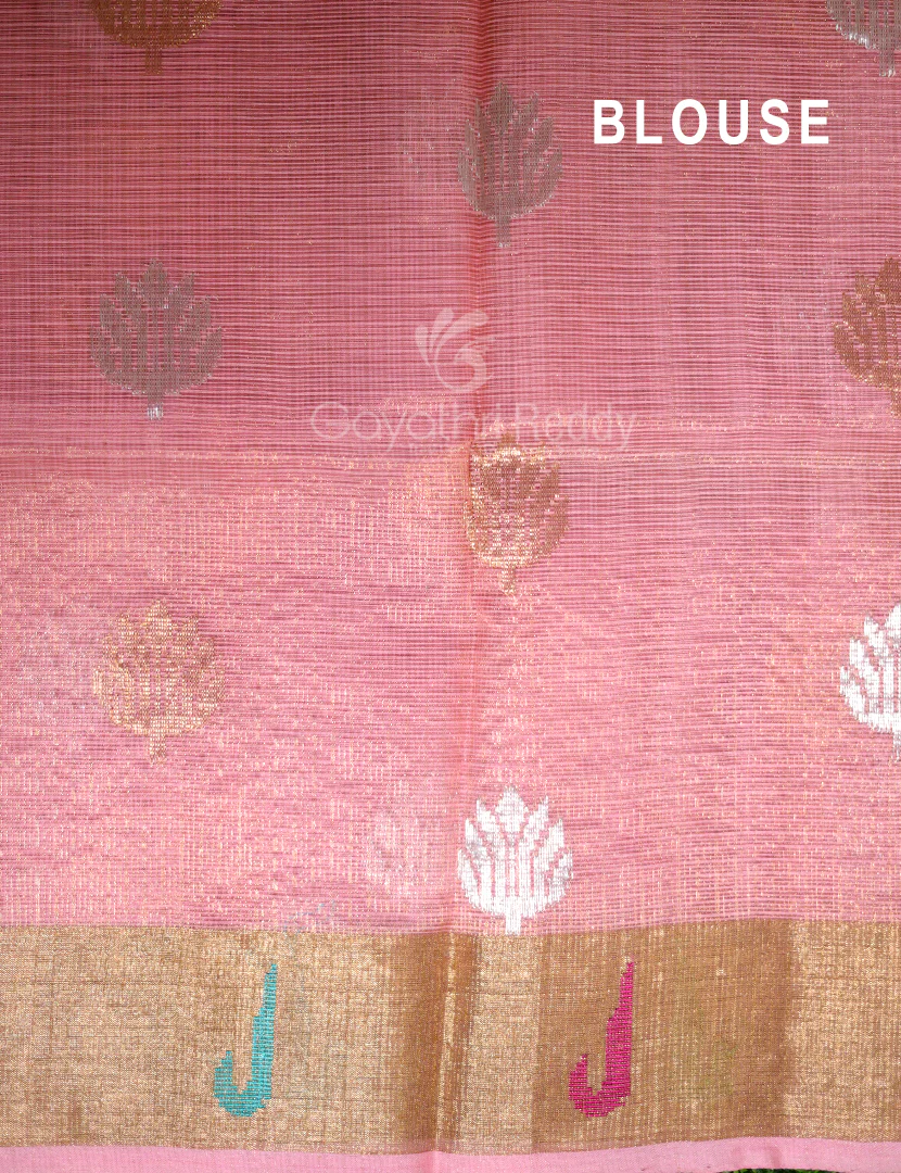 BLOUSE: Onion pink colour tissue combination blouse with buttes and zari border.